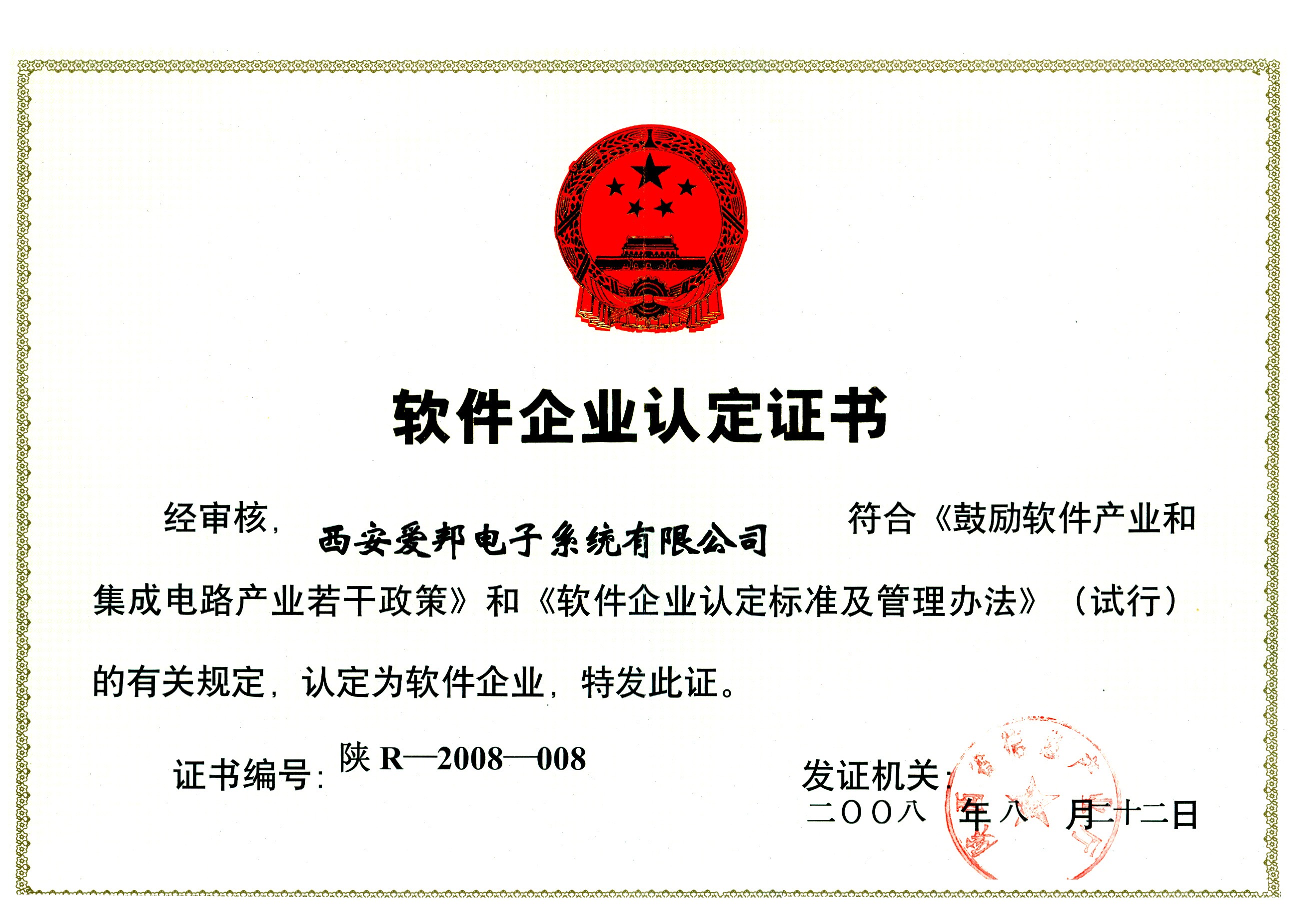 愛邦公司是陜西省認定的第一批國家高新技術企業、第一批省級優秀軟件企業,是西安高新區“優秀瞪羚企業”和“知識產權優勢企業”,企業先后獲得西安市政府“中小企業創新工程”、陜西省政府“13115重大科技專項”、國家科技部“中小企業創新基金”支持,被國家知識產權局評為“專利工作先進單位”,企業商標連續三次榮膺“陜西省著名商標”稱號。